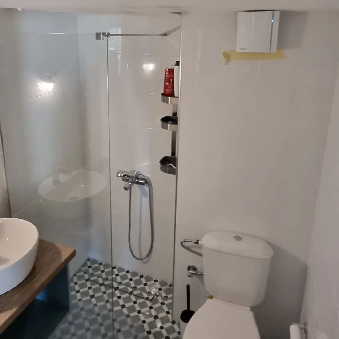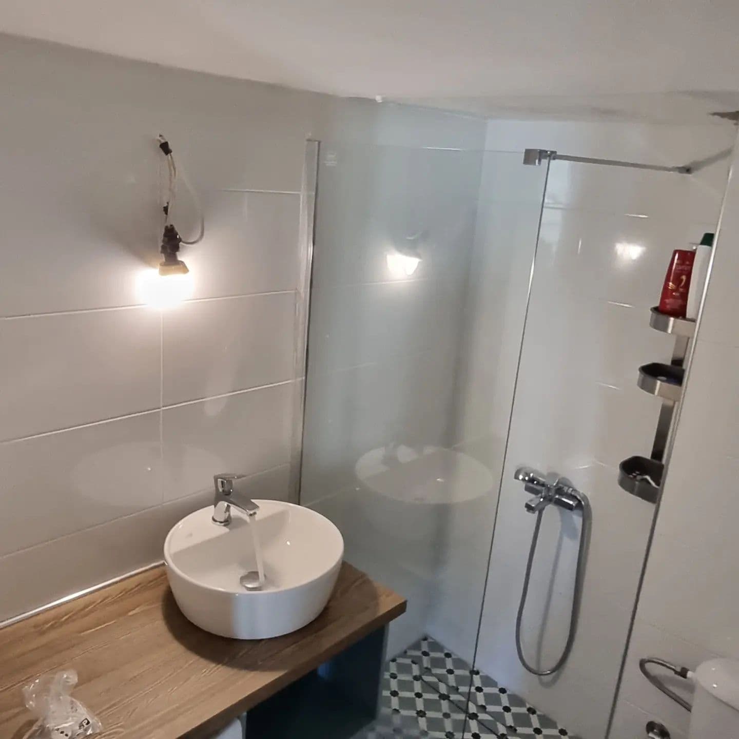Τα παλιά πλακάκια έδωσαν τη θέση τους σε νέα, με βάση το γούστο του πελάτη μας και έχοντας ως προτεραιότητα την καλύτερη ανάδειξη του χώρου. Τοποθετήθηκε νέος φωτισμός και σταθερό τζάμι ασφαλείας στο ντουζ. Τέλος, το μπάνιο αυτό ολοκληρώνεται με μια πρακτική θερμάστρα- κρεμάστρα για μεγαλύτερη εξοικονόμηση χώρου.