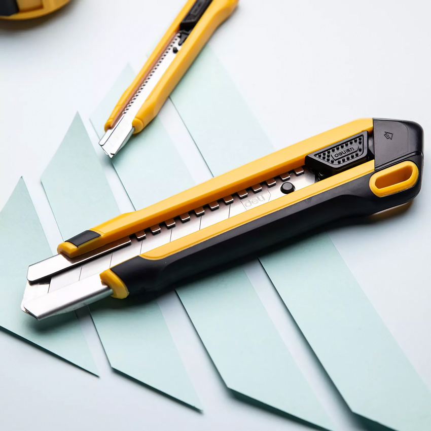DELI πλαστικό κοπίδι με ασφάλεια DL025, 25mm, κίτρινο