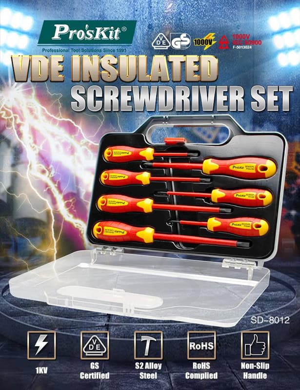 PROSKIT σετ κατσαβίδια ηλεκτρολόγου SD-8012, 1000V μόνωση, με θήκη, 7τμχ