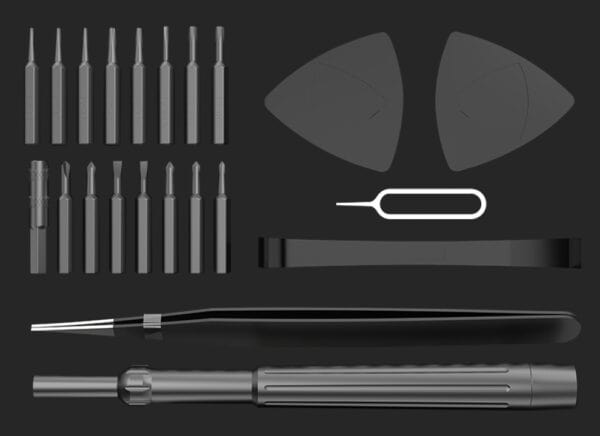 1x screwdriver set (M2.5, M3.0, M3.5, M4.0, M4.5, M5.0, M5.5, G3.8, G4.5, U, 0.8, 1.0, 0.3, 0.1, Pry bar, Scrapper, T1, T2, T3, T4, T5, T6H, T7H, 2x T8H, T9H, T10H, T15H, T20H, T25H, 2x Y000, Y00, Y0000, Y0, Y1, Y2, 3x AP2, 2AP5, AP6, 2.0, 2.0, 3x PH0000, 3x PH000, 2x PH00, 2x PH0, 2x PH1, 2x PH2, PZ0, PZ1, PZ2, 2x SL1.0, 2x SL1.3, SL1.5, SL2.0, SL2.5, SL3.0, SL3.5, SL4.0, SL4.5, SL5.0, 2x H0.7, 2x H0.9, H1.3, H1.5, H2.0, H2.5, H3.0, H3.5, H4.0, H4.5, H5.0, H6.0, U4, U6, U8, U10, 2.0, 2.3, 2.6, 3.0, SQ0, SQ1, SQ2, SQ3, H1/16, H5/64, H3/32, H7/64, H1/8, H9/64, H5/32, H3/16, H4-H1/4