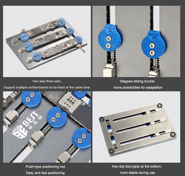 Βάση επισκευής motherboard κινητών από την Best. Συγκρατεί σταθερές τις motherboard, ενώ στο κάτω μέρος τις διαθέτει αντιολισθητικά πόδια για να μην μετακινείται κατά την διάρκεια των επισκευών.
