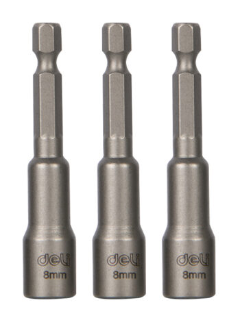 DELI σετ καρυδάκια DL4808T για δραπανοκατσάβιδο, μαγνητικά, 8mm, εξάγωνα, 3τμχ