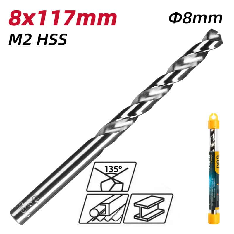 DELI τρυπάνι DL16080G για μέταλλο, M2 HSS, 8x117mm