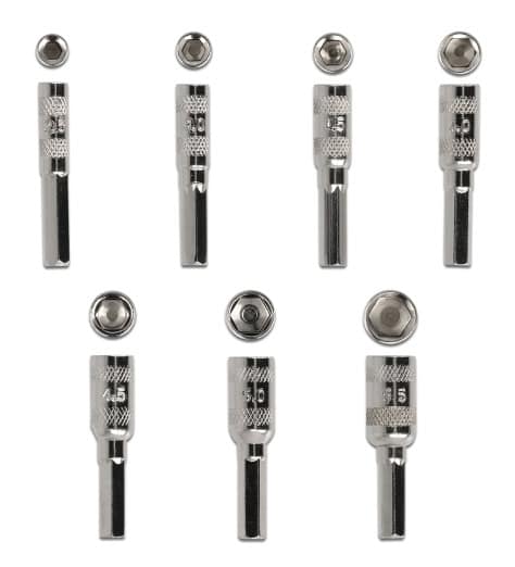 7x bit external hexagon: 2.5, 3.0, 3.5, 4.0, 4.5, 5.0, 5.5mm