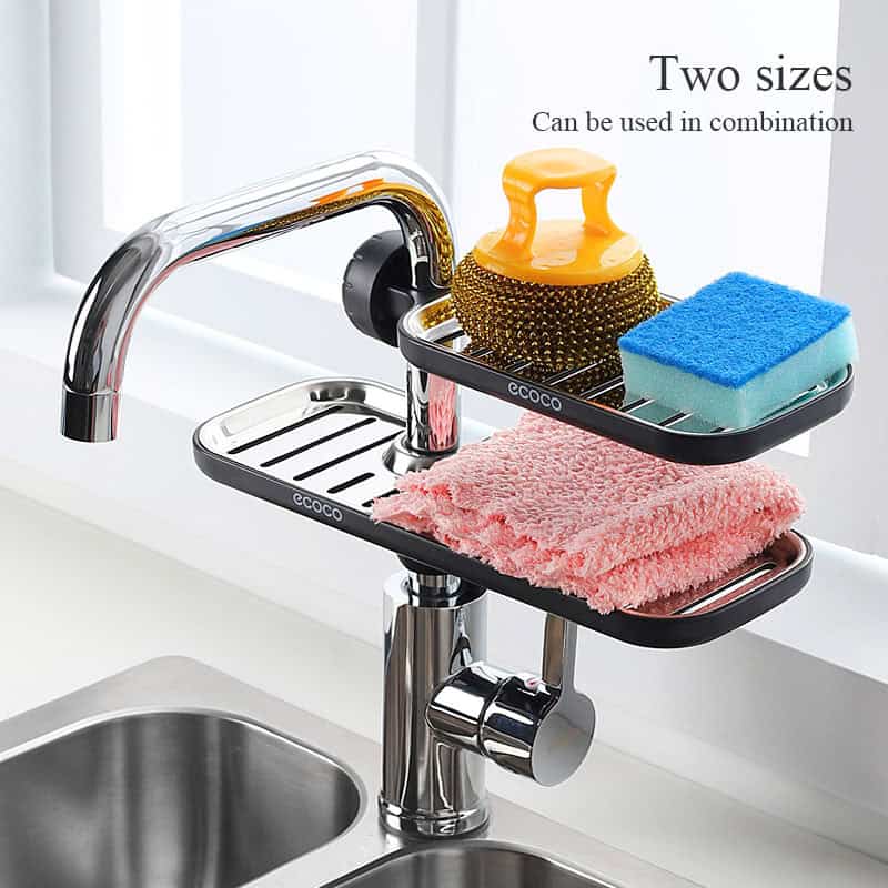 Βάση στήριξης σε σωλήνα νεροχύτη της Ecoco με δυνατότητα περιστροφής 360°, ιδανική για την κουζίνα ή το μπάνιο. Στην βάση μπορούν να τοποθετηθούν σφουγγάρια, σαπούνι, σαμπουάν, αφρόλουτρο και λοιπά είδη περιποίησης.