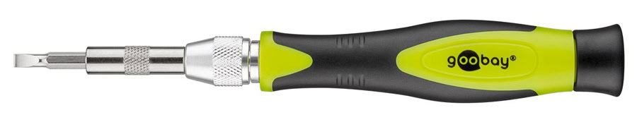 Το σετ κατσαβιδιών ακριβείας της Goobay αποτελείται από ένα κατσαβίδι και μια μεγάλη συλλογή από 35 μύτες κάθε είδους, τοποθετημένα μέσα σε πλαστική θήκη, για την εύκολη τακτοποίηση και μεταφορά τους.