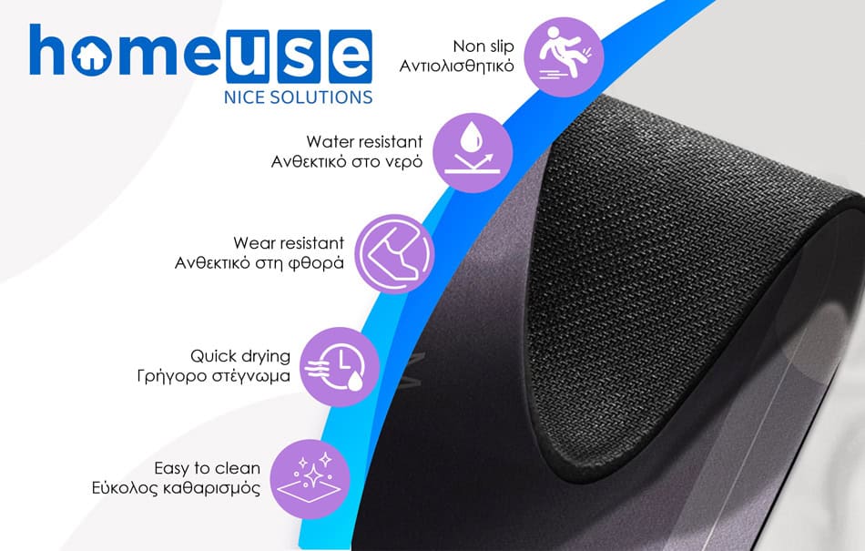 Πατάκι HOME USE για το μπάνιο, με αντιολισθητική επιφάνεια, για επιπλέον σταθερότητα. Είναι κατασκευασμένο από πολυεστέρα με καουτσούκ επιφάνεια στο κάτω μέρος, που προσφέρουν εξαιρετική αντοχή στη φθορά και το νερό.