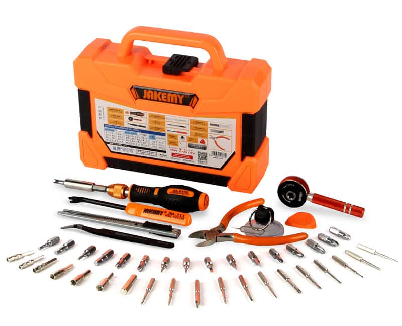 Σετ εργαλείων από την Jakemy που αποτελείται από κατσαβίδι, καστάνια, προεκτάσεις, τσιμπίδες, εργαλεία ανοίγματος, μύτες κατσαβιδιού κ.α.