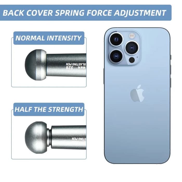 Εργαλείο θραύσης τζαμιών της Kaisi, κατάλληλο για εργασίες επισκευής κινητών τηλεφώνων. Επιτρέπει την εύκολη αφαίρεση του τσαμιού της κάμερας και του πίσω καλύμματος. Η δύναμη του χτυπήματος μπορεί να ρυθμιστεί για ακόμη μεγαλύτερη ακρίβεια.
