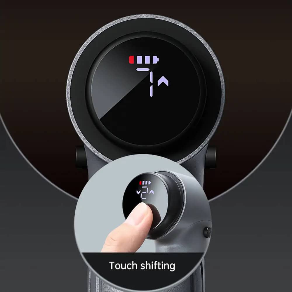 Η κεφαλή μπορεί να περιστρέφεται δεξιόστροφα ή αριστερόστροφα, ενώ διαθέτει και 7 ταχύτητες ροπής, οι οποίες εναλλάσσονται εύκολα μέσω της οθόνης αφής.