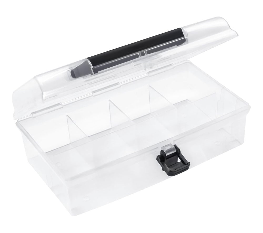 Πλαστική, διάφανη θήκη, με 5 εσωτερικές θέσεις, κατάλληλη για την αποθήκευση μικρών εργαλείων και εξαρτημάτων.