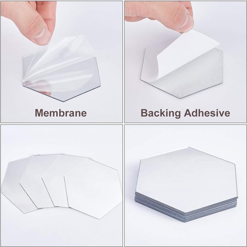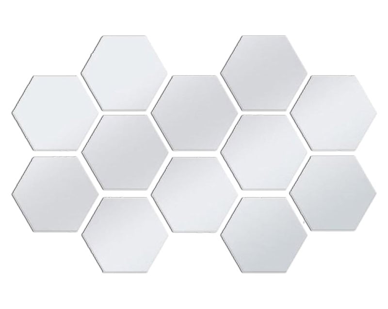 Σετ ακριλικοί καθρέφτες σε σχήμα εξάγωνου, ιδανικοί για την διακόσμηση του σπιτιού σας. Η τοποθέτηση τους γίνεται στον τοίχο με αυτοκόλλητη ταινία, ενώ χάρη στο σχήμα τους, είναι εύκολο να τους προσαρμόσετε και να δημιουργήσετε ένα ομοιόμορφο μωσαϊκό που θα απογειώσει την αισθητική του χώρου σας.