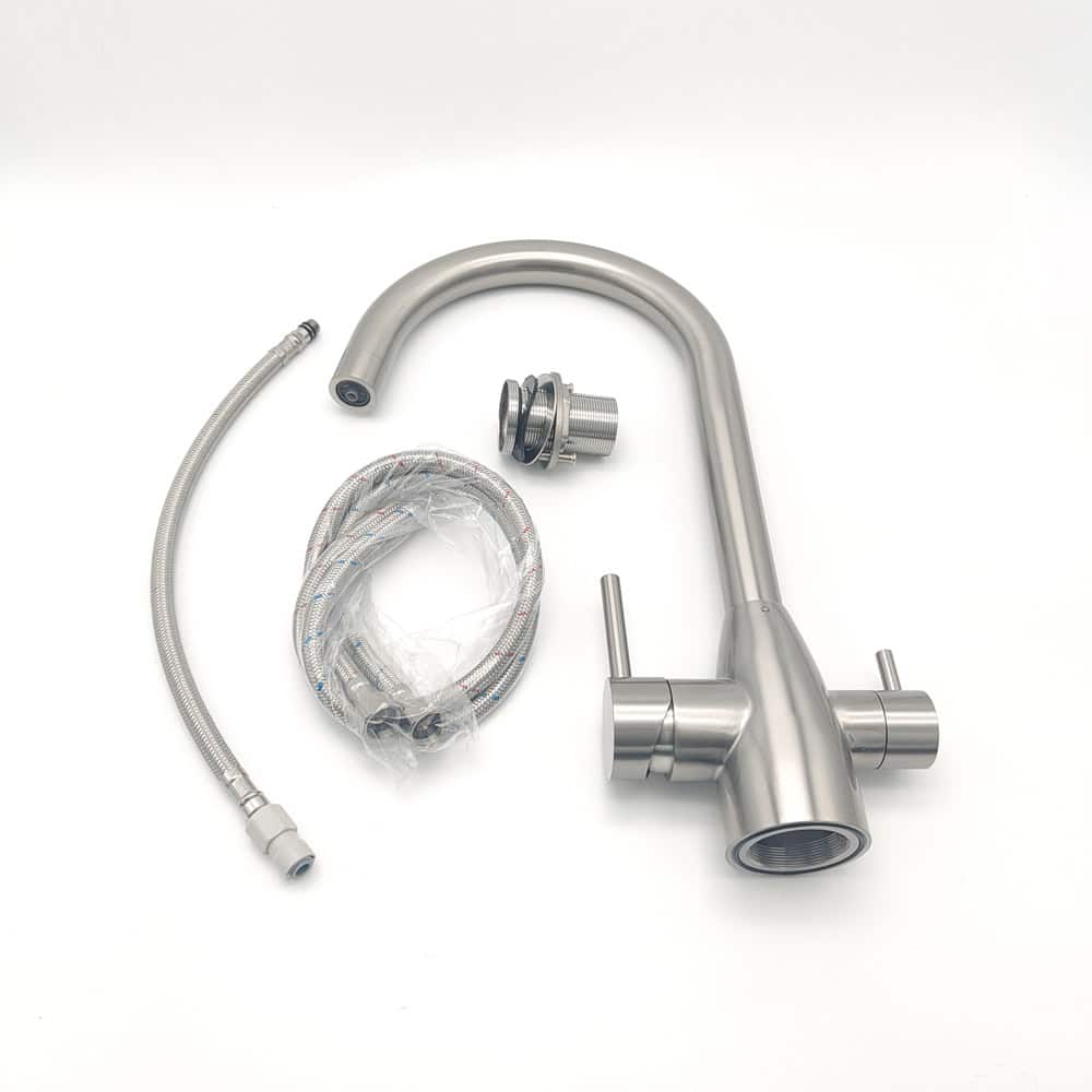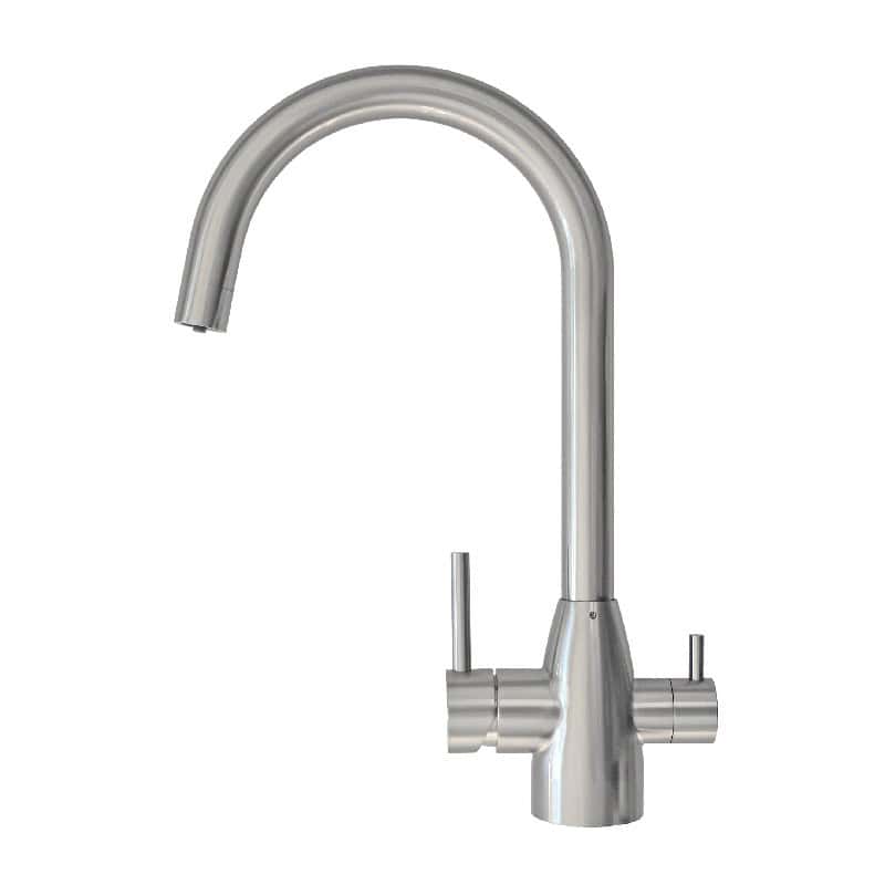 Τρίοδη καμπυλωτή βρύση κουζίνας για κρύο / ζεστό και φιλτραρισμένο νερό.